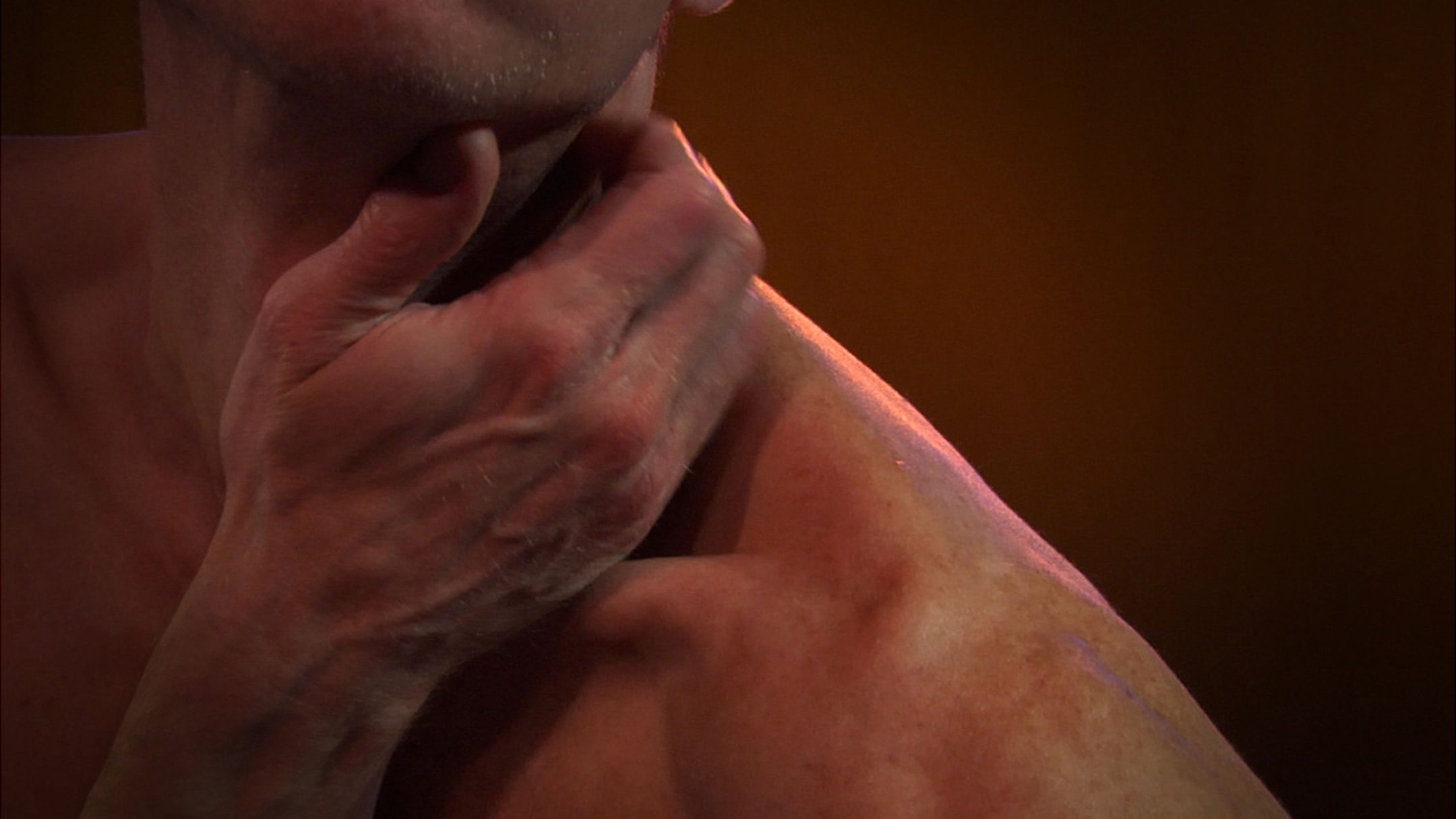 Le portrait d’un homme en quarantaine, avec ses doutes, ses regrets, ses fragilités… Sa rencontre avec lui-même, tout en vulnérabilité. En hommage à son interprète Ken Roy, qui nous a quittés trop tôt. Cadré de façon abstraite et mis en valeur à travers de très gros plans, son corps nous apparaît parfois sous la forme d’un canevas de peau et de muscle – une image familière et à la fois impressionnante. Qu’il soit submergé dans les pénombres ou baigné dans une palette de bleu éclatant, l’esprit taquin et le physique sensuel de Roy sont d’autant plus accentués par son entourage hautement visuel. Une série de portraits fantaisistes de l’artiste Pol Turgeon, marquent le concept oscillant du soi-public et du soi-privé. Roy va et vient intuitivement de cet état de clarté, privant ainsi le spectateur et l’artiste de réponses. Toutes les expectatives se voient dissoutes. Inspiré de la pièce de danse Quarantaine 4×4, mettant en vedette un quatuor de danseurs masculins d’âge mûr, 40 capture le dévoilement poétique de cet homme à un moment de grande transformation.
